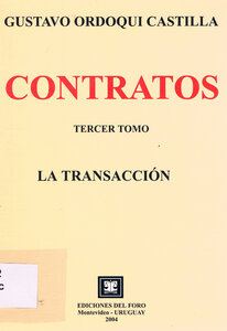 Ordoqui Castilla, Gustavo (2004). Contratos : Tercer tomo: La transacción. Montevideo [Uruguay] : Del Foro, 2004. Idioma : Español ( spa) | Clasificación: |